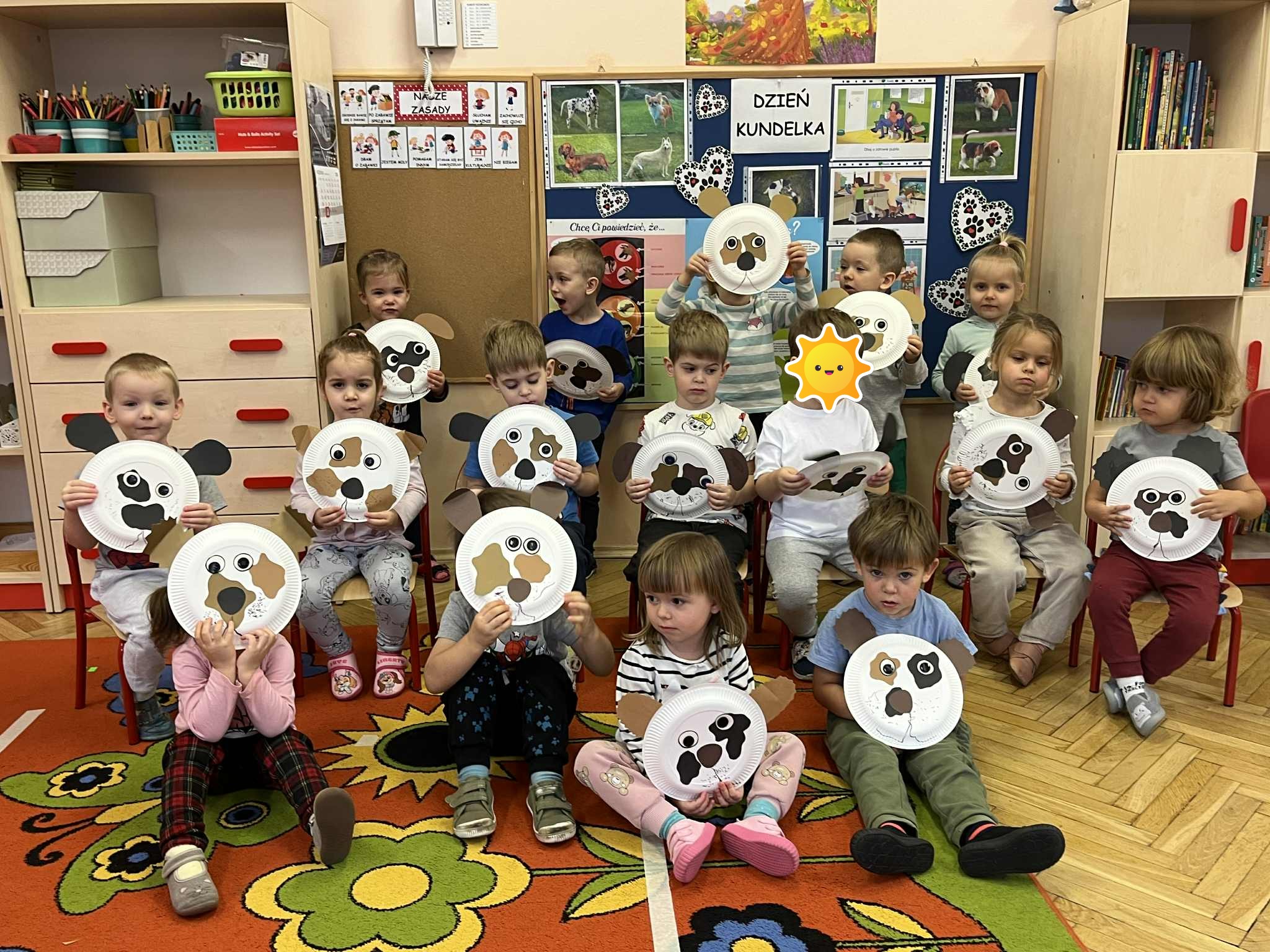 Pamiętając o naszych czworonożnych przyjaciołach, obchodziliśmy 25 października w przedszkolu „Dzień Kundelka”. Rozmawialiśmy o psiej wierności i o tym, jak właściwie i odpowiedzialnie opiekować się psem a stworzone z tej okazji „kundelkowe” portrety będą nam przypominać o tym, jak ważna jest nasza troska i szacunek dla tych sympatycznych psiaków o wielkich sercach, które obdarzone miłością, potrafią ją wspaniale odwzajemnić.