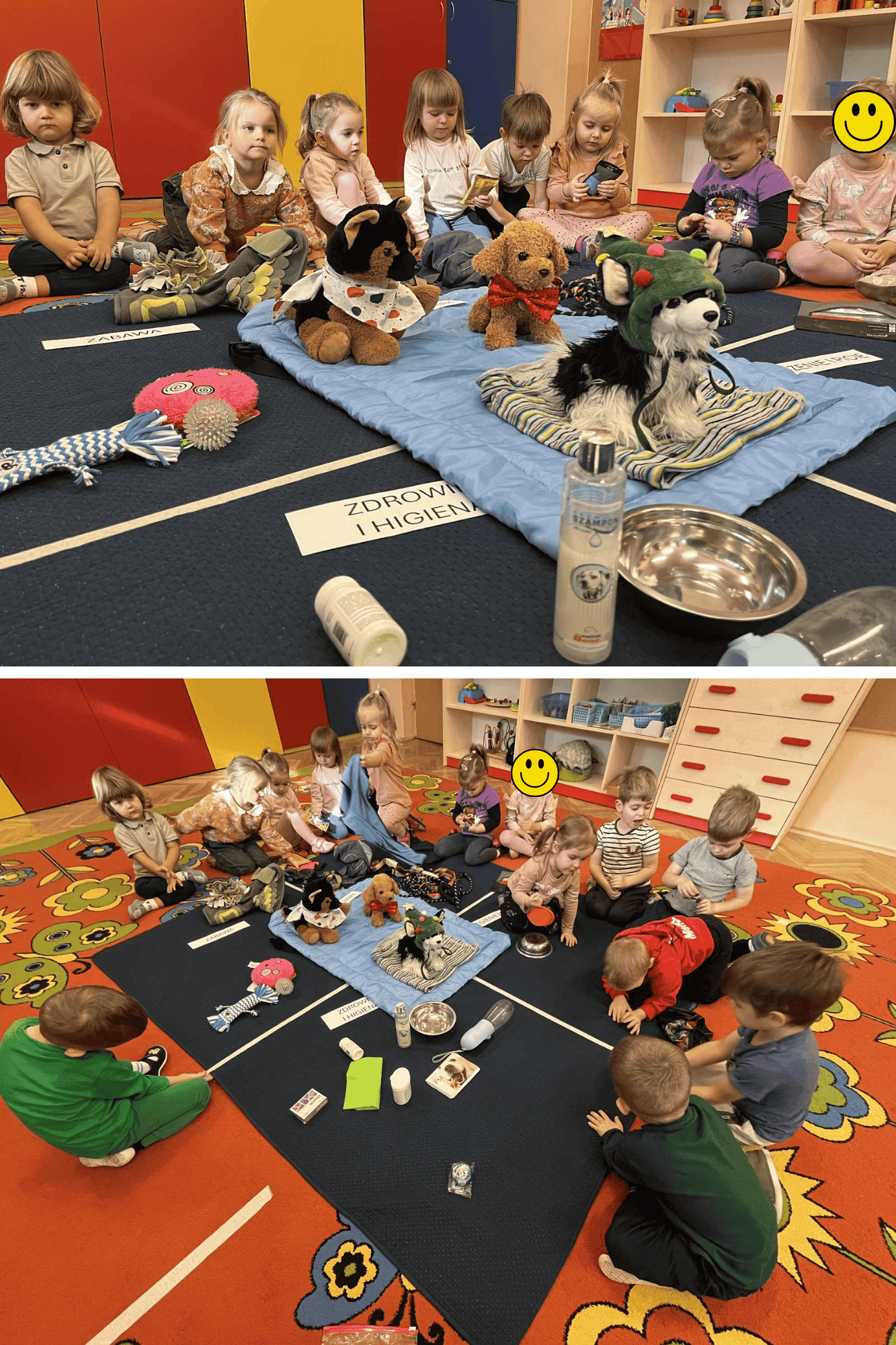Uczestniczyły w zabawach dydaktycznych, podczas których oglądały akcesoria potrzebne w opiece nad naszymi czworonożnymi przyjaciółmi.
