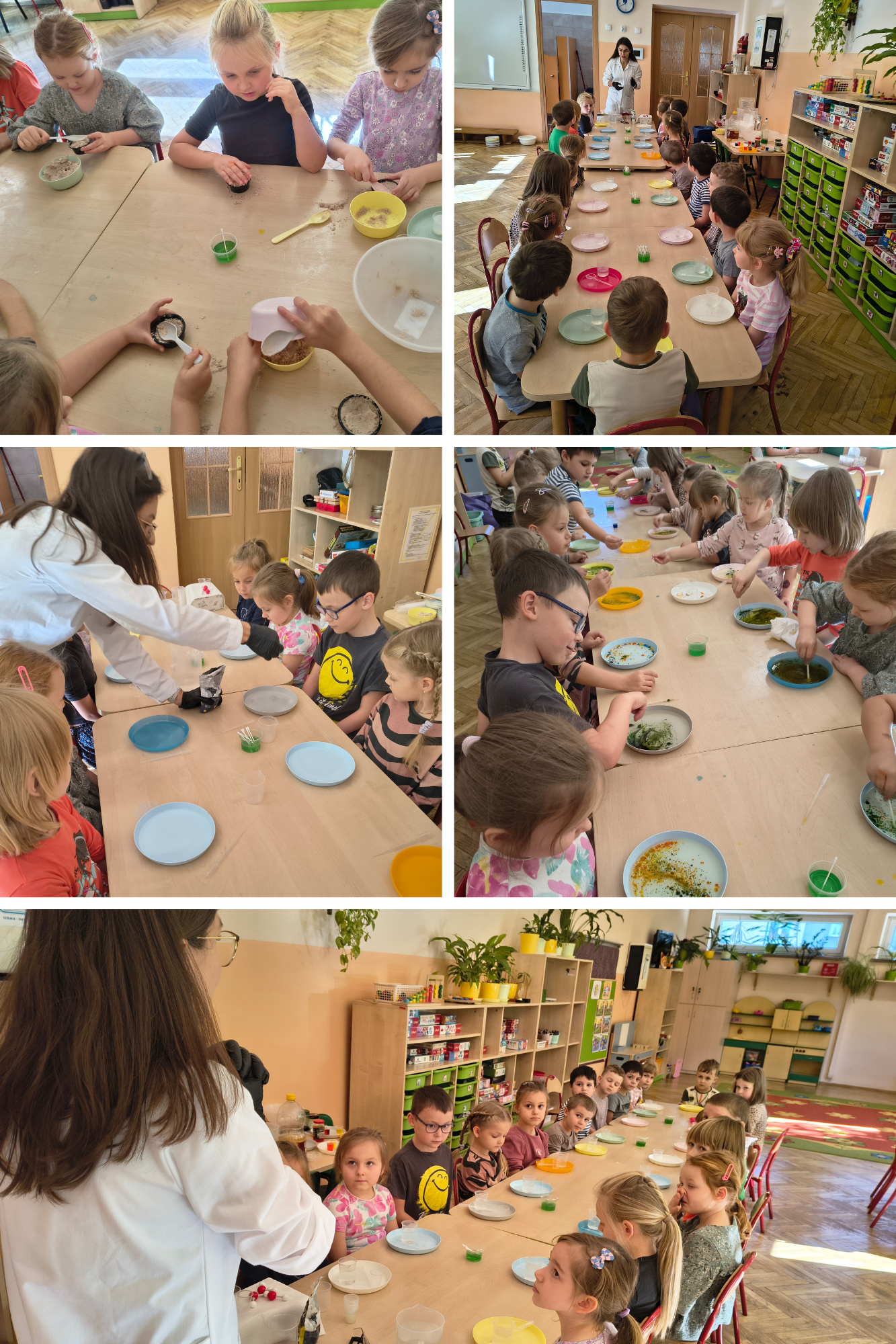 W poniedziałek 20 października cztery grupy: Niedźwiadki, Kangurki, Tygryski i Biedronki wzięły udział w bardzo ciekawych warsztatach pt.: „Dlaczego woda nie wystarczy do umycia rąk?” Przedszkolaki poznały właściwości wody, mydła i detergentów podczas przeprowadzanych różnych eksperymentów. Na zakończenie zajęć dzieci wykonały pastylki musujące do kąpieli. Zajęcia cieszyły się ogromnym zainteresowaniem wszystkich przedszkolaków.
