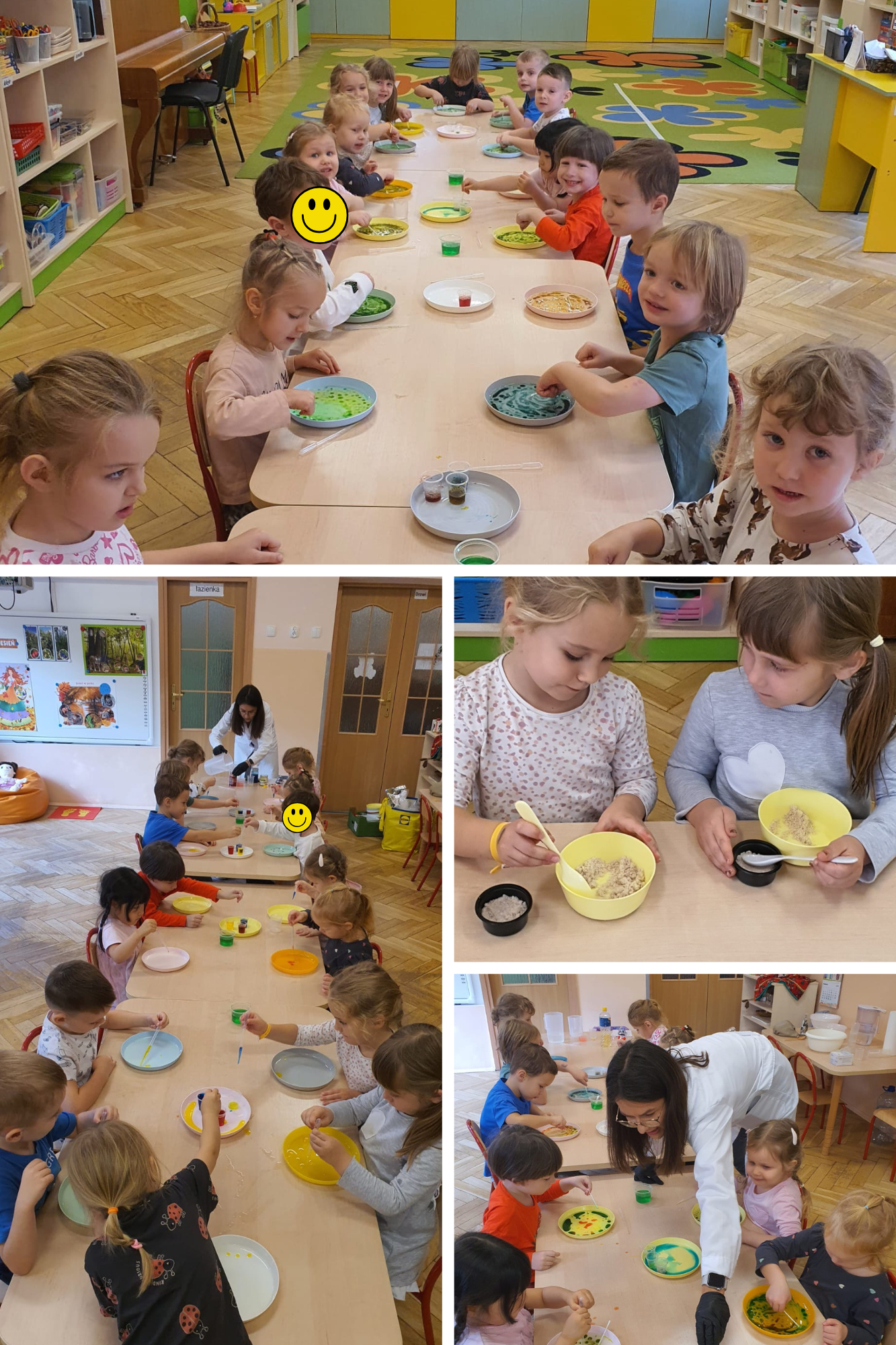 Odbyły się również „Tęczowe zajęcia”, w ramach których dzieci postanowiły założyć „Laboratorium Misia Miodusia” i eksperymentować z kolorami.